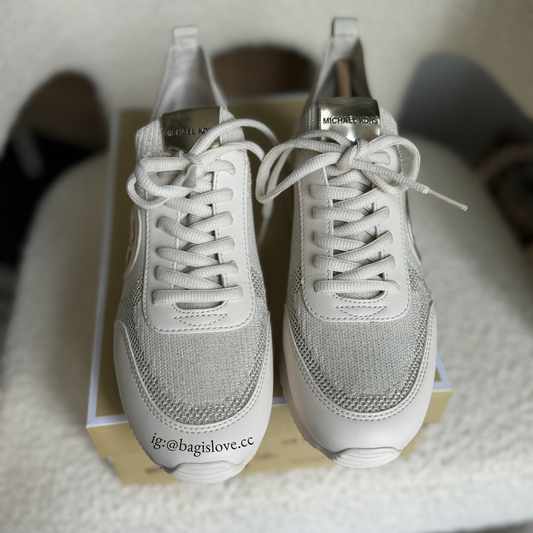 Jenkins Metallic Stretch Knit Trainer in Pale Gold (on-hand ph)