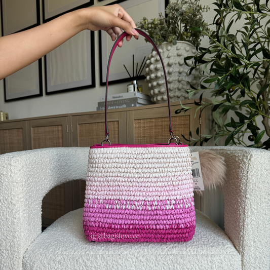 Pratt Medium Ombré Straw Shoulder Bag in Pink Multi (on-hand ph✨)