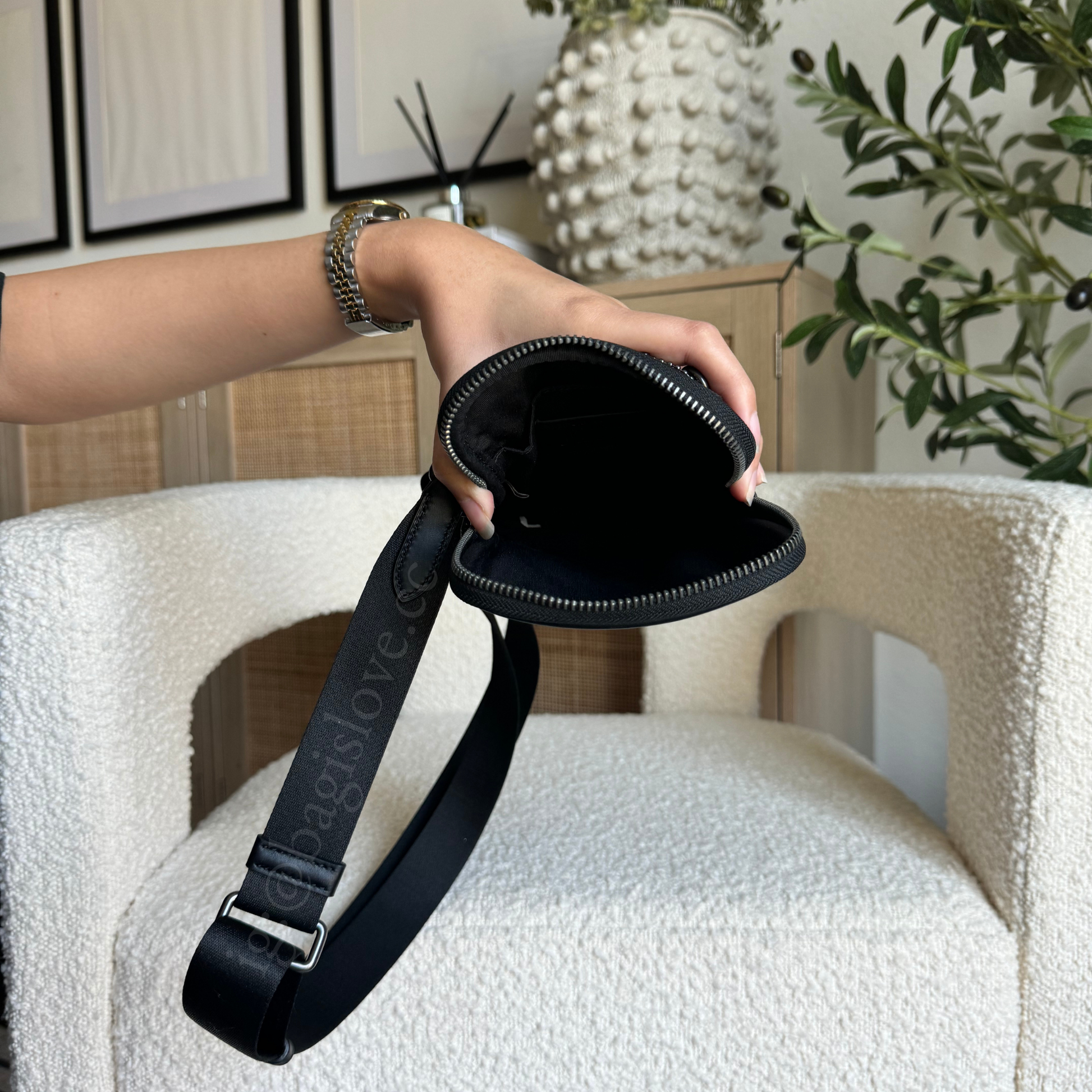 - Detachable strap with 28.5" drop for shoulder or crossbody wear