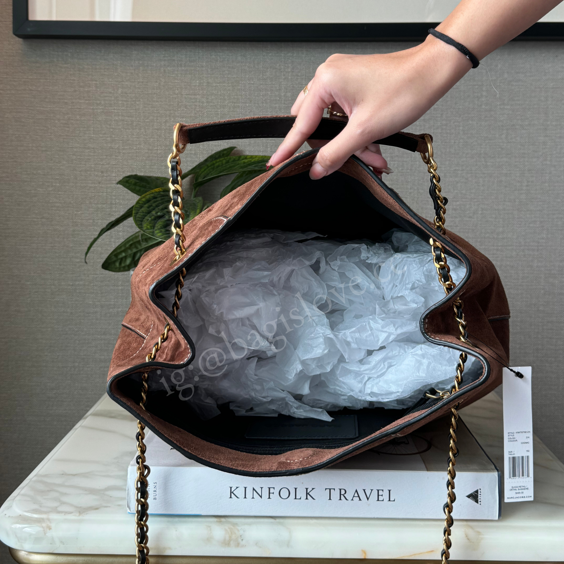 The Large Plaza Tote Shoulder Bag In Cognac Suede